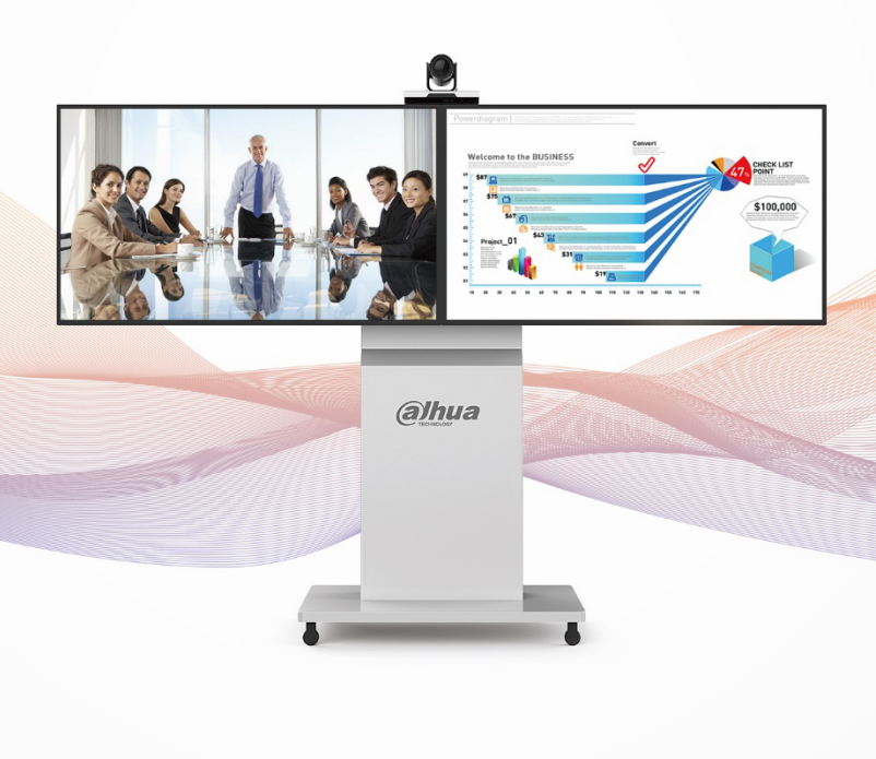 大華一體式雙屏創(chuàng)真系列DH-VCS-RPS320采用一體化設(shè)計(jì),集成高清攝像機(jī)、編解碼器、麥克風(fēng)、顯示屏、推車支架等,支持4K超高清顯示(可選)