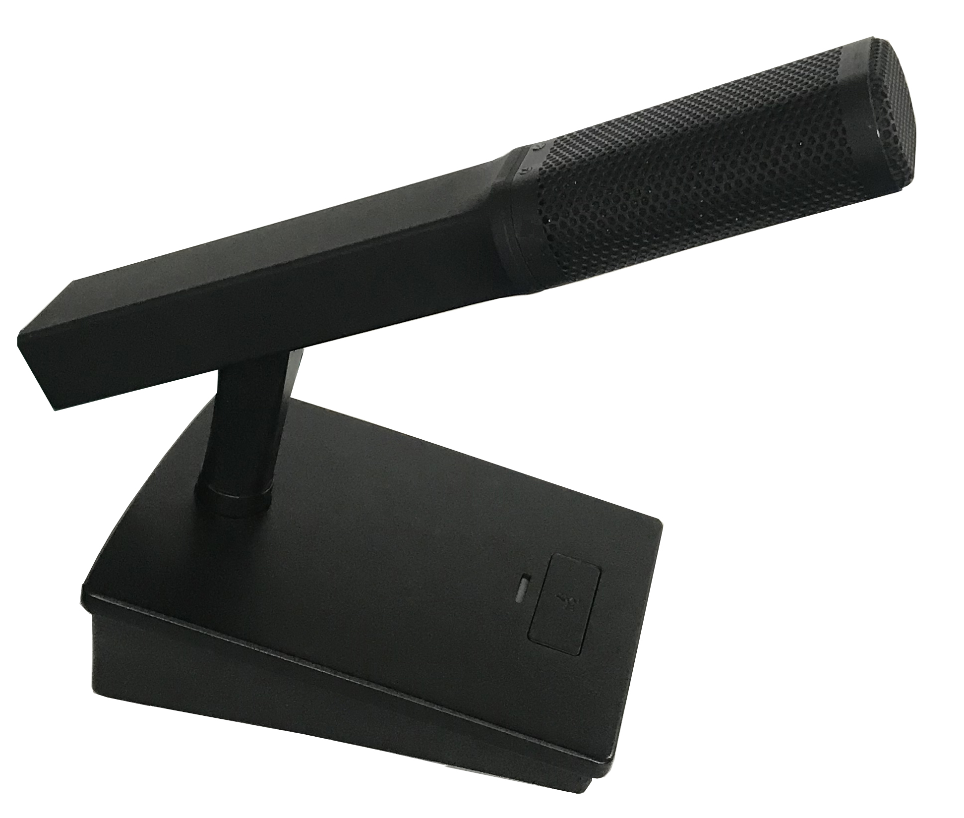 全金屬方柱形話筒,俯仰角度可調(diào)。