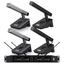6. 四聯(lián)屏LCD顯示屏,顯示工作信道、工作頻點、RF接收信號、AF音頻信號、鎖屏指示、會議座實時電量,實時反饋系統(tǒng)工作狀態(tài);