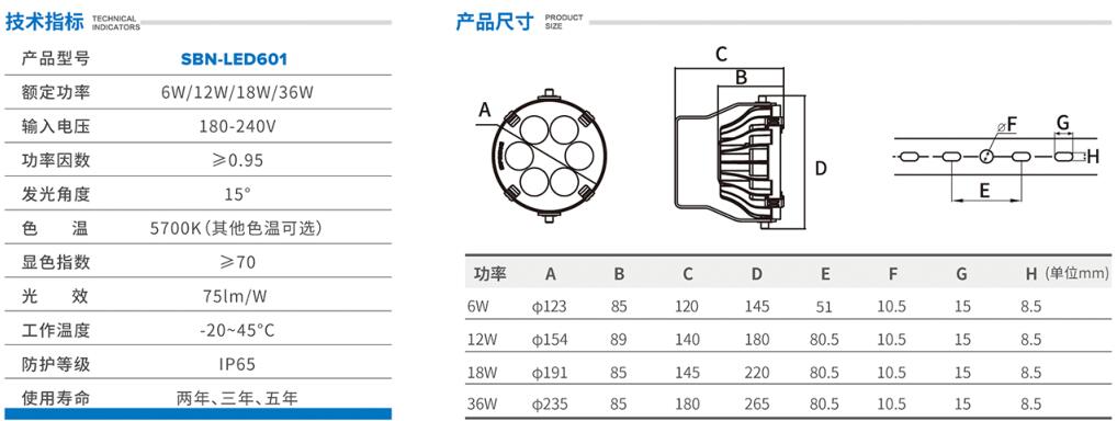 小角度配光角度; 3535大尺寸封裝光源,高亮度,長壽命; 加厚鋼化玻璃面罩,高強硬度防爆抗壓耐高溫; 壓鑄鋁散熱體,達到絕佳散熱效果,確保燈具壽命; 三層防護,超高防水等級。