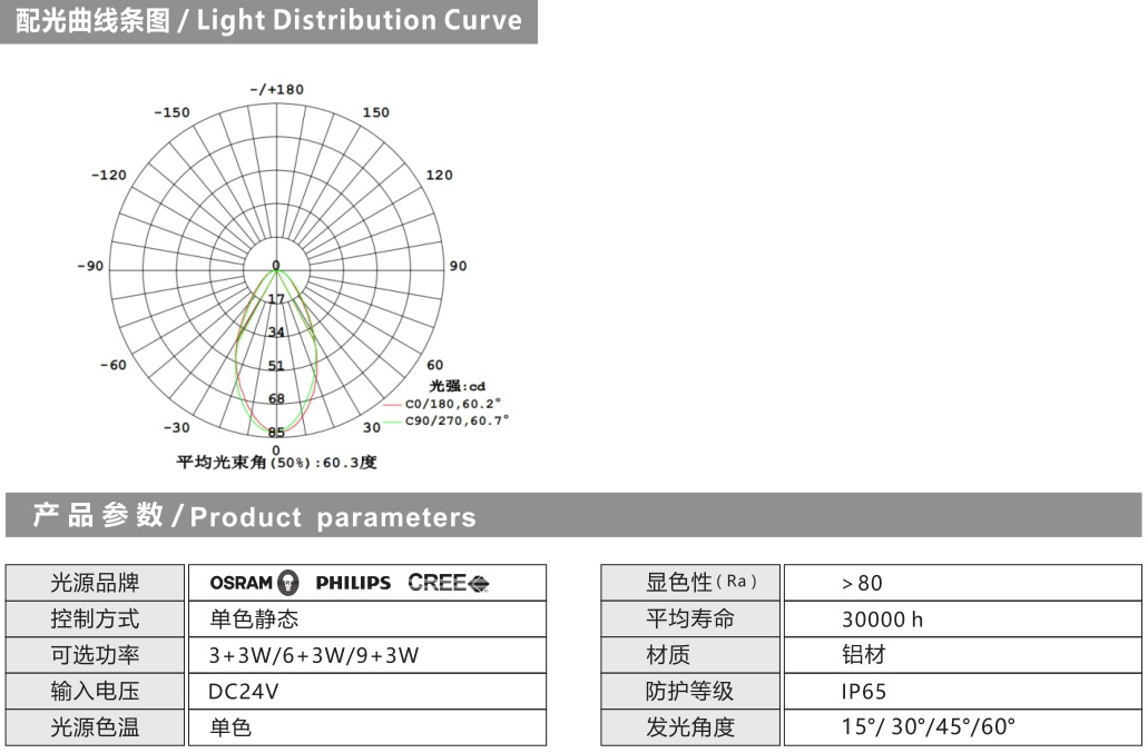 配光: 1、透鏡采用日本帝人光學級PC原料,高精度的模具加工工藝,光斑均勻度>0.92 ,眩光值UGR<8 ,光斑完美,透光率同比高10%以上。