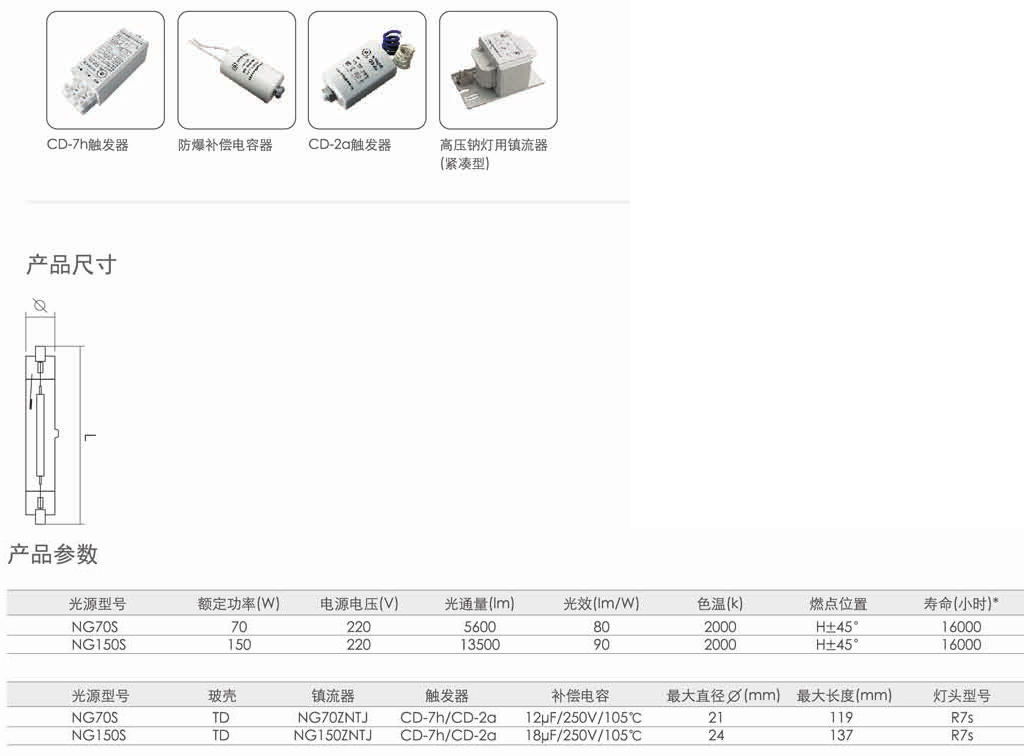 ●改進(jìn)了電弧管工藝,使光源擁有優(yōu)異的性能指標(biāo)