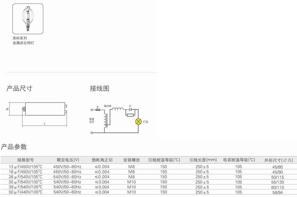 ●與漏磁式鎮(zhèn)流器配套使用,可使金鹵燈正常工作。采用更高的耐溫等級材料,有更高的耐溫性能