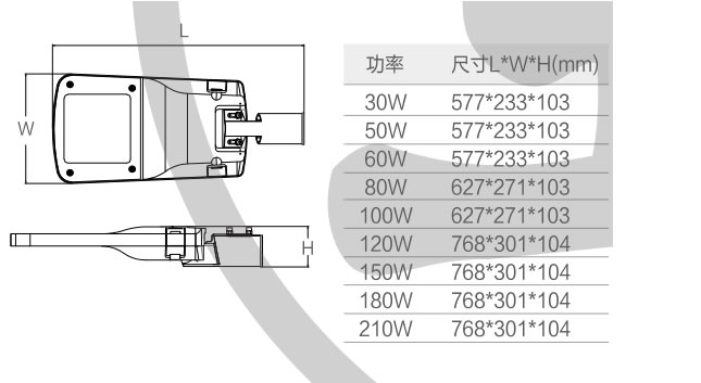 壓鑄鋁殼體,出光面為PC+玻璃;電氣箱上開蓋,免工具開合及安裝,有斷路器;安裝套筒直徑可選,角度可調節(jié)包括豎裝;可選配NEMA等控制器件;可選配SPD;有防墜鏈;