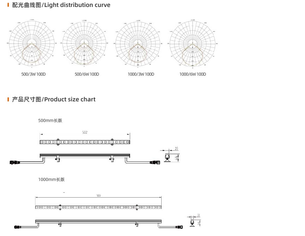 ●兩種尺寸,三種功率500mm and 1000mm●兩種色溫可選3000K/ 4000K