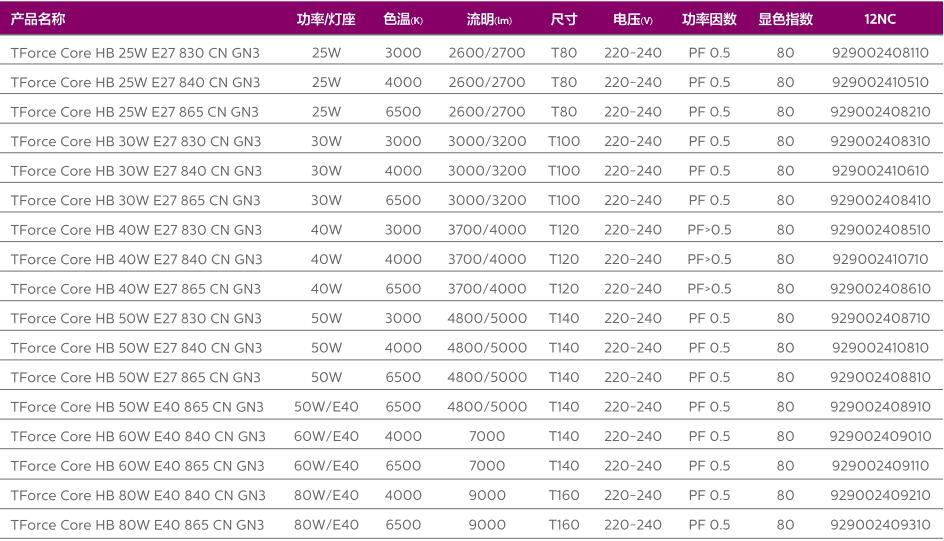 ●多種瓦數(shù)、流明和色溫選擇,滿足不同應(yīng)用空間與亮度的需求