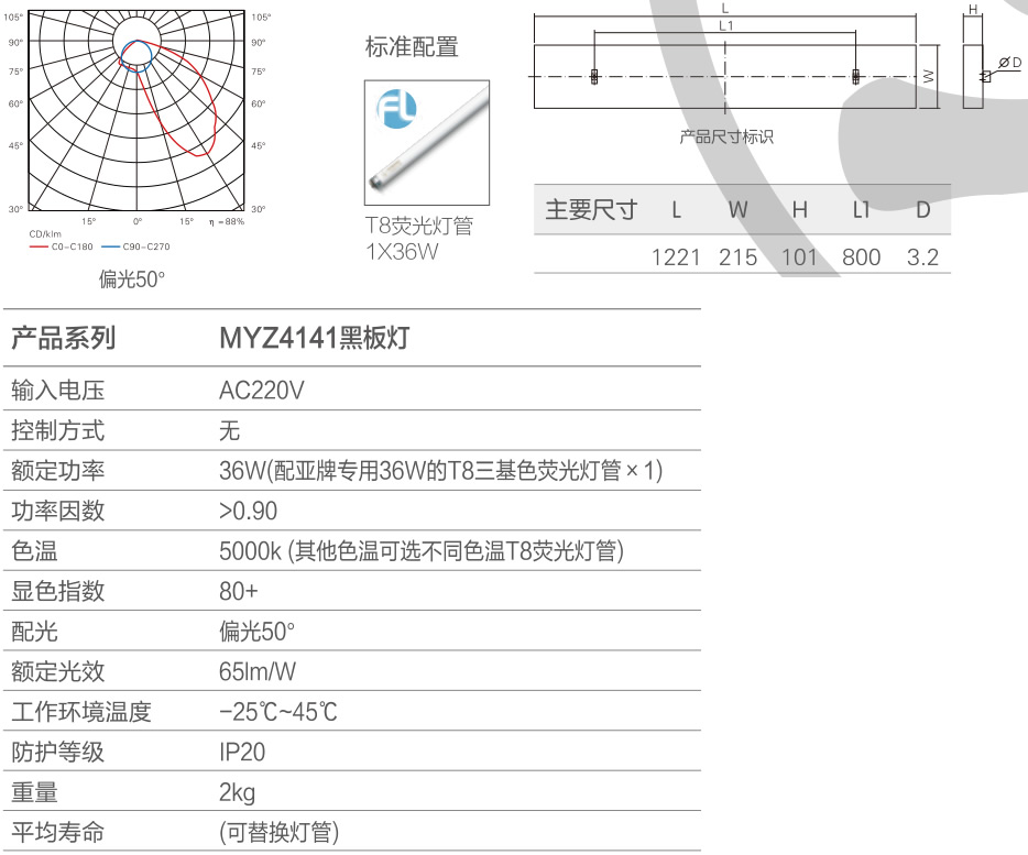 ●燈具采用電子鎮(zhèn)流器,配備T8 36W熒光燈管, 使用壽命長,光通量高,安全可靠,經(jīng)濟實惠。