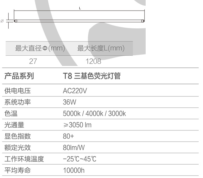 ●采用三基色熒光粉,與傳統(tǒng)T8相比,節(jié)能達(dá)30%。