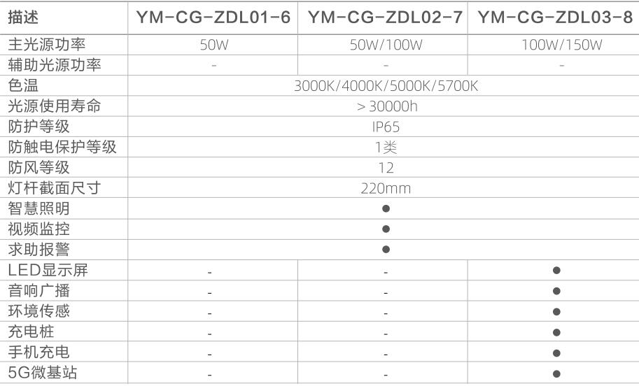 ●使用LED光源,防眩光處理; 壓鑄鋁燈體;高度自由調(diào)節(jié)6m、7m、8m; 功能擴(kuò)展:監(jiān)控、裝飾燈帶、廣告屏、音箱、充電樁、安全報警系統(tǒng),自由選配;燈桿管徑220mm;外部落實(shí)均為不銹鋼材質(zhì); .