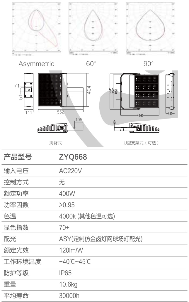 冷軋板罩殼,表面耐腐涂層,殼體堅固,內腔空氣流通好;純鋁鍛壓高導熱散熱器,表面陽極氧化處理;高亮度LED,整燈光效120lm/W;亞明自制高性能恒流驅動電源;內置10kv防雷擊保護器;防眩光蜂窩罩(選配);抗UV線PC透鏡。