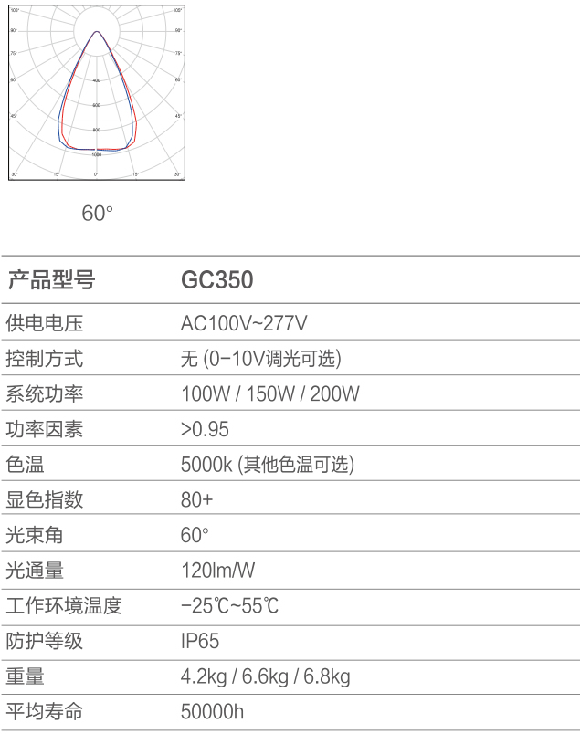 擾度,滿足各類惡劣的工業(yè)應(yīng)用電磁環(huán)境。50000小時(shí)的壽命保證(使用國際一線品牌芯片)55C的環(huán)境溫度中可以安全工作(采用新壓鑄技術(shù)保證散熱器有大的散熱面積,擁有卓越的散熱穩(wěn)定性)IP65的防護(hù)等級(jí)( 發(fā)光面用整塊透鏡/玻璃覆蓋,提高了防護(hù)的可靠性,使用更為安全)1201m/W的光效(專業(yè)二次光學(xué)設(shè)計(jì),光學(xué)效率高)≥80的顯色指數(shù)