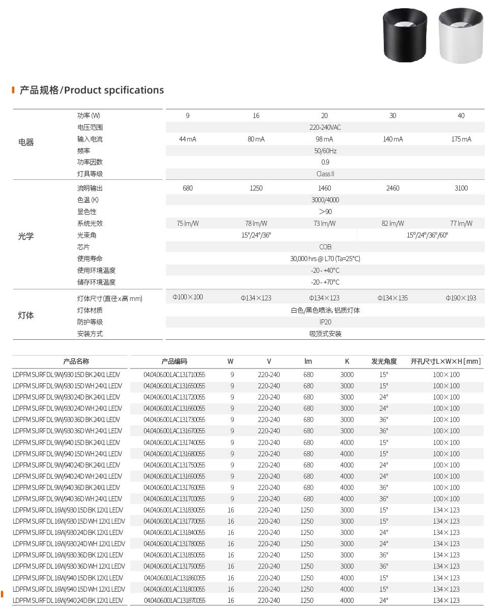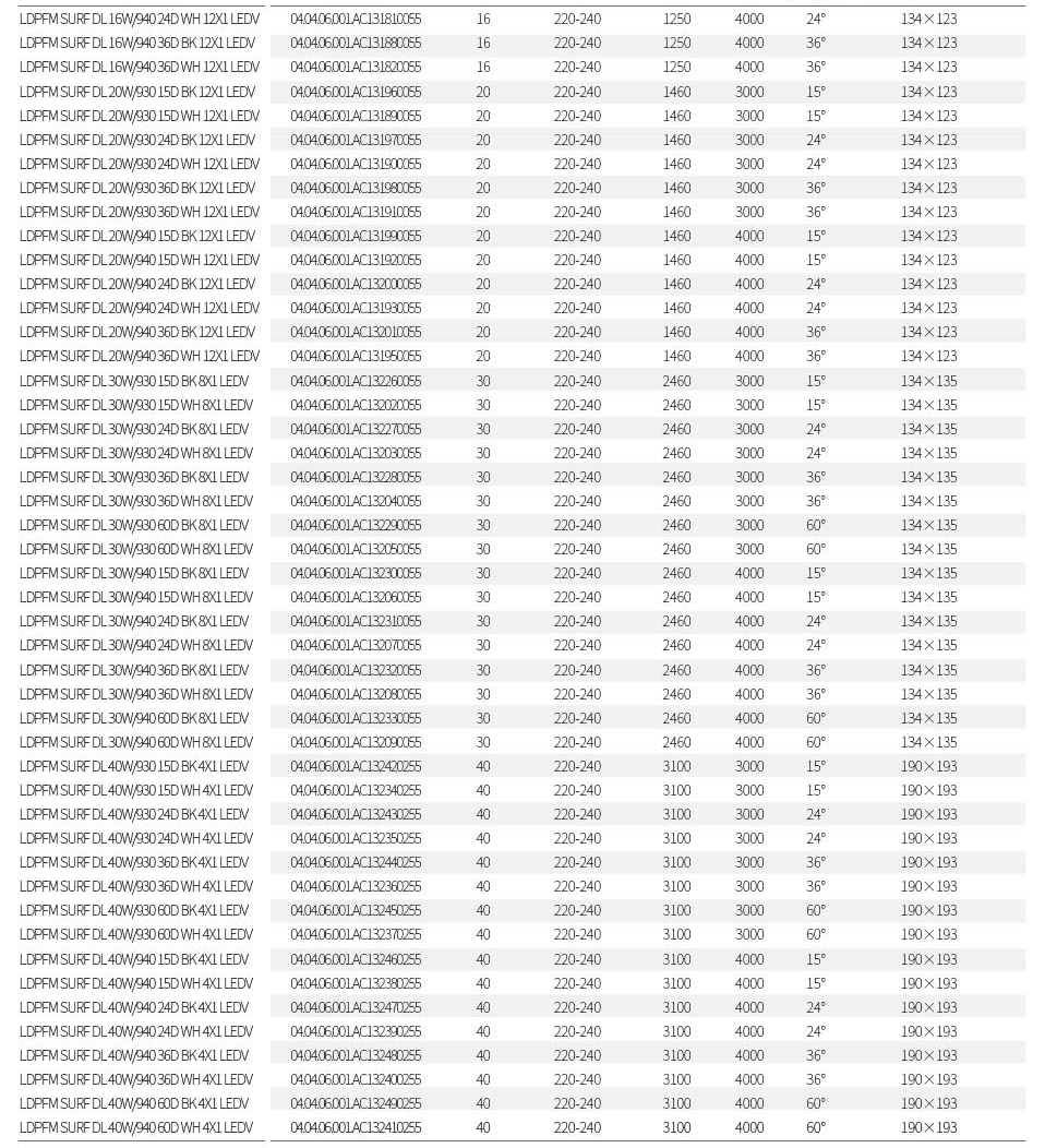 ●4種角度:15°.24°. 36°. 60°(30W/40W)